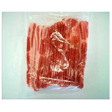 赤身と脂が層になったおなじみの部分で、旨みがある豚バラ肉をスライスにしました。